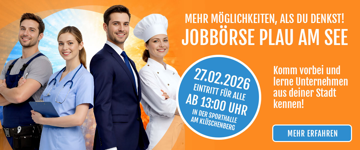 Motto: „Ich möchte in Plau am See arbeiten!“ Auf Wunsch vieler Plauer Unternehmer initiiert die Stadt Plau am See erstmalig ihre eigene Jobbörse. Unter dem Motto „Ich möchte in Plau am See arbeiten!“ findet sie am 27. Februar 2026, direkt nach den Winterferien, in der Sporthalle am Klüschenberg statt.